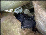 under, and around rocks filling the notch. |