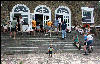 may gather in front of the stores